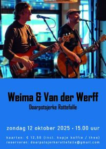 Weima & Van der Werff Zondag 12 oktober 2025 • 15.00 uur Kaarten: € 12,50 (incl. kopje koffie / thee) Reserveren: [email protected]
